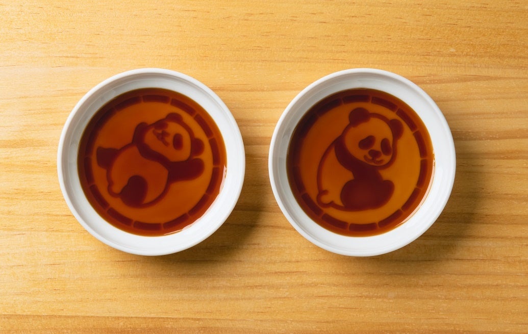 ▼しょうゆを注ぐと、ふたごの柄が浮かび上がる!!