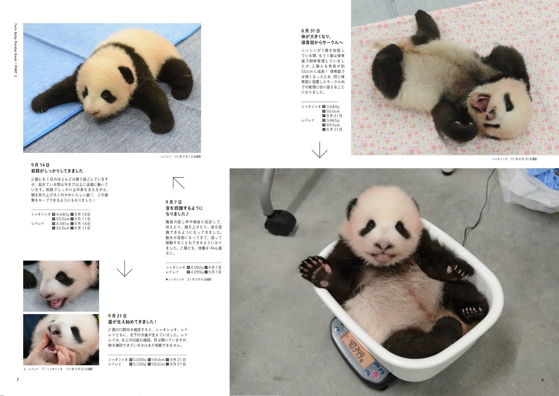 本誌では、シャオシャオとレイレイの2021年6月の生まれたばかりの小さな姿から、丸太に登ろうとする元気いっぱいな最新の姿まで、約半年にわたるふたごのパンダの成長記録を20点以上の写真とともに振り返ります。