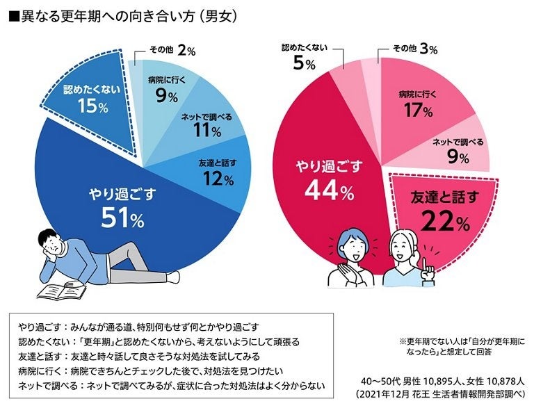 ▶男女の更年期のレポート「更年期との向き合い方が、人生100年時代のカギ 男性も女性も後半の人生を考えるきっかけに」https://www.kao.co.jp/content/dam/sites/kao/www-kao-co-jp/lifei/report/pdf/82.pdf