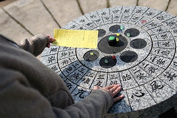 戦国時代に戦を占っていたという星占術が伝わるお寺。「九曜星占盤(くようせいせんばん)」は直径8mある巨大星占盤で、生年月日から星を算出し、石盤の中にある円盤を回すと性格・恋愛・相性・対人関係を占うことができる。参拝者も占いOK!(星の札志納金1枚500円以上)
