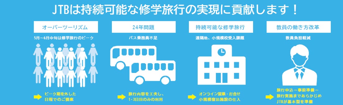 こうした状況を踏まえ、本サービスでは、学校現場の負担軽減と観光事業者が抱える課題の解決にも貢献し、持続可能な修学旅行の実現を支援します。