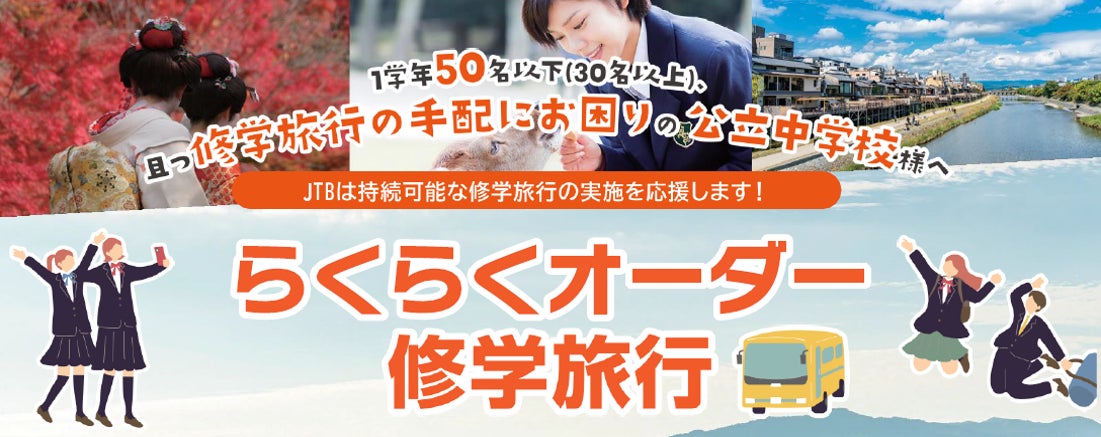 株式会社JTBは、6月10日より小規模公立中学校向けに、新サービス「らくらくオーダー修学旅行」の提供を開始します。本サービスにより、これまで煩雑だった修学旅行の手配をスムーズにし、小規模校における修学旅行の手配や準備における課題を解決し、持続可能な修学旅行の実現を支援します。