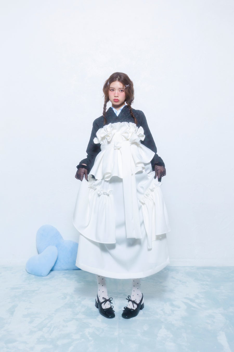 オリジナルの総レース振袖に、ボリューム感のあるティアード袴を合わせたレイヤードスタイル。
