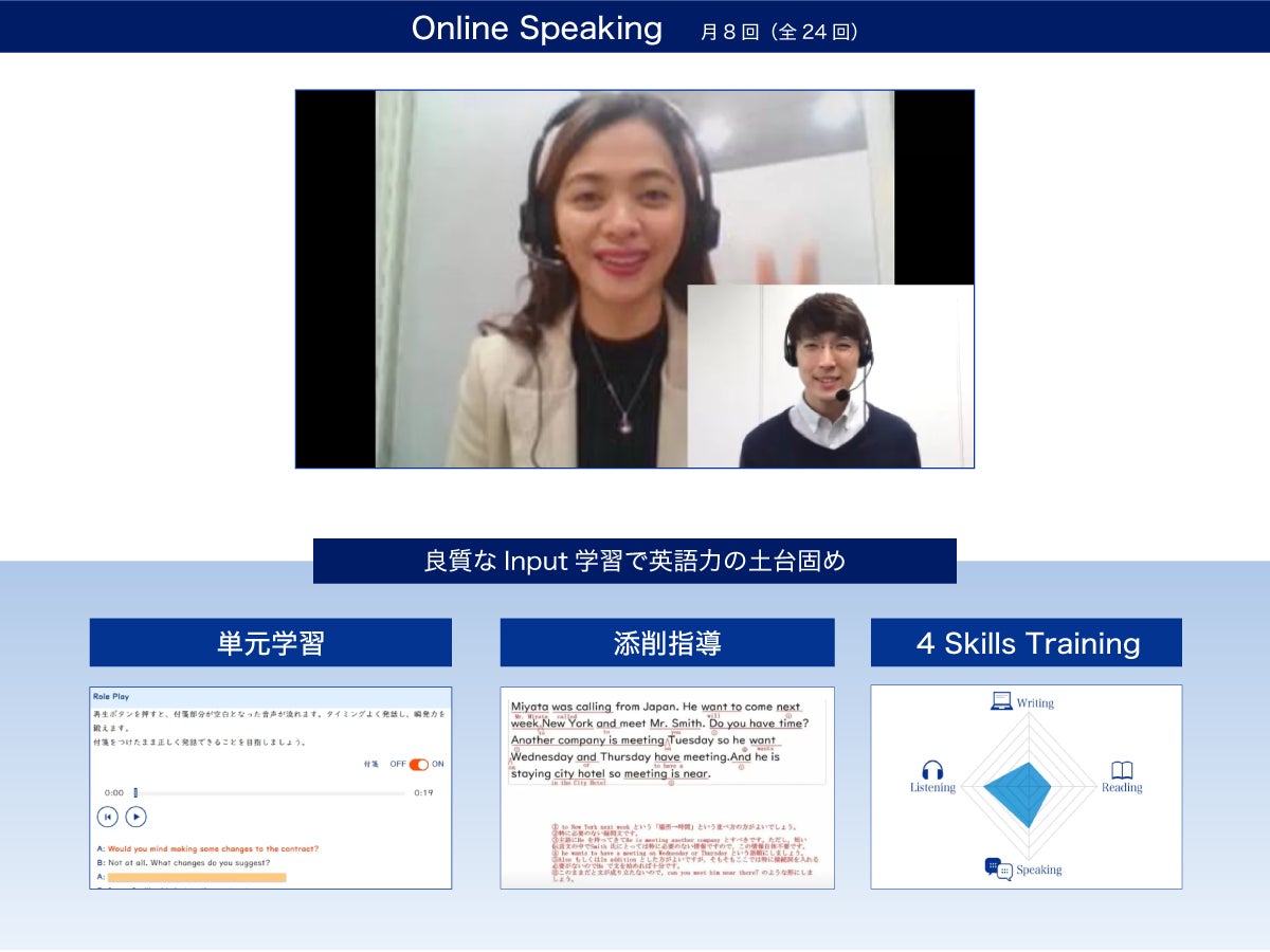1.充実のオンラインレッスン(全24回)+ベースとなる単元学習で「英会話力」がぐんと伸びる