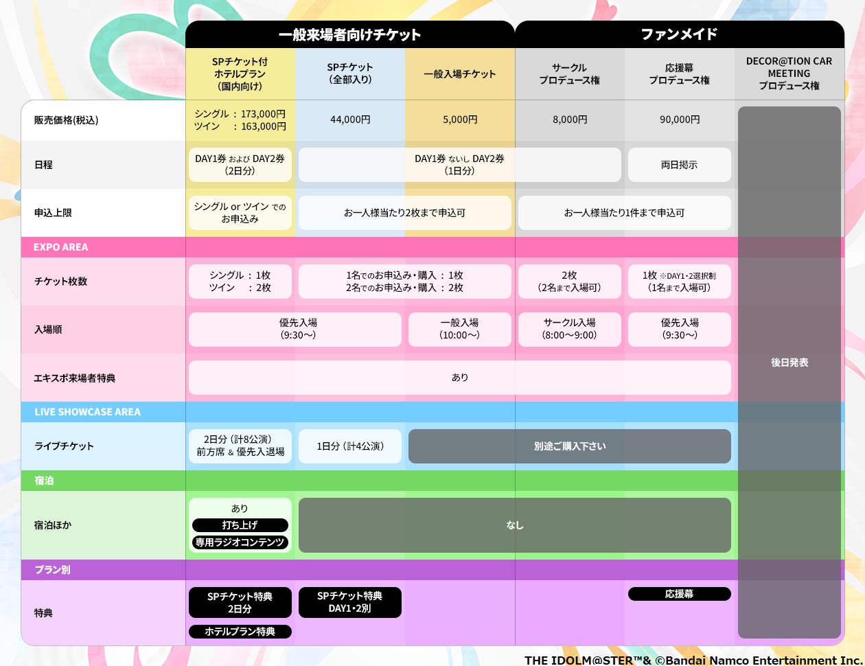 アイマスエキスポでは多くのチケットの種類やプロデュース権がございます。
