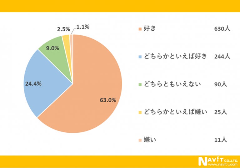 「春は好きですか?」という質問については、「好き」が63.0%、「どちらかといえば好き」が24.4%と、合わせると87.4%の人が春は好きだと回答していました。