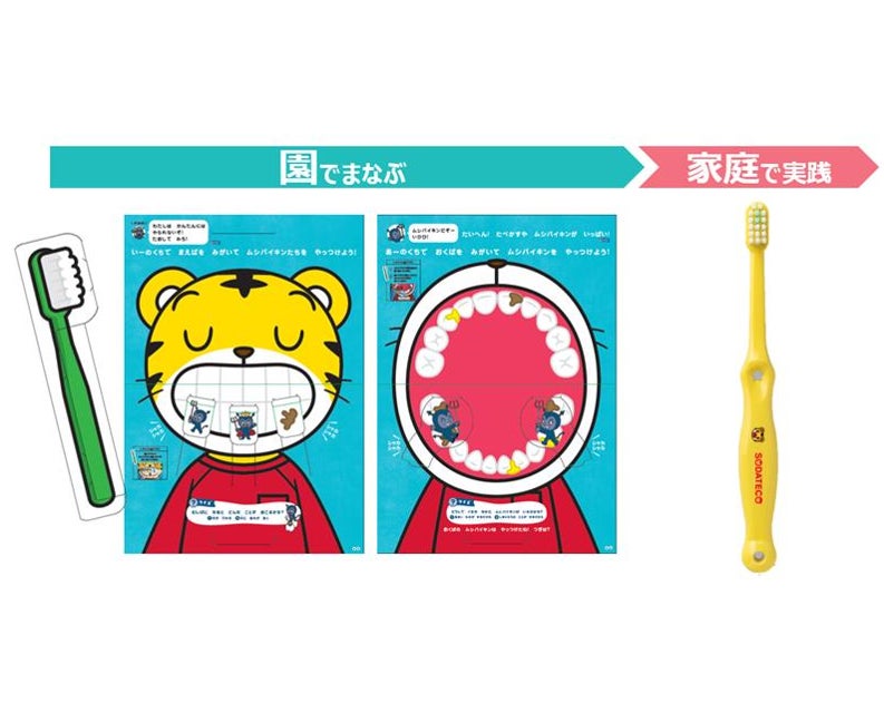 また、正しい歯磨きを習慣化することで将来の子どもの健康をサポートしていきたいという同じ願いを持ったサンスターグループより子どもの握りやすさや磨きやすさを考えて設計された「ソダテコこどもハブラシ(3-5才用)」を無償で提供します。 「こどもちゃれんじ」は、今後も園と家庭における様々な生活のシーンで、親子が楽しく成長を実感できる時間をお届けしてまいります。