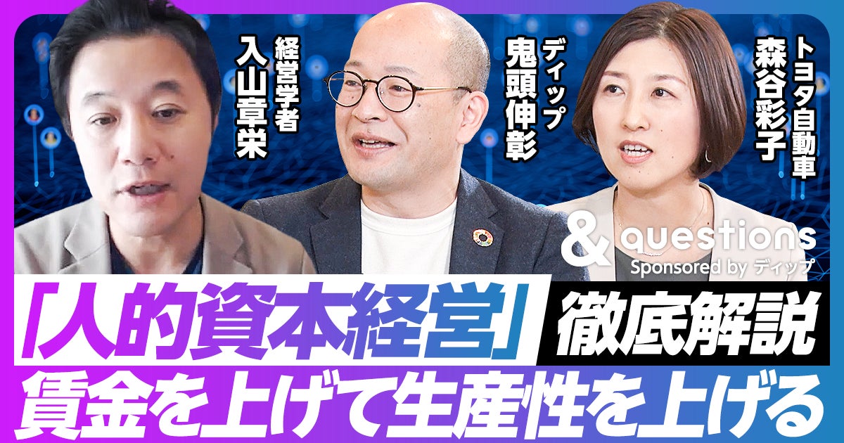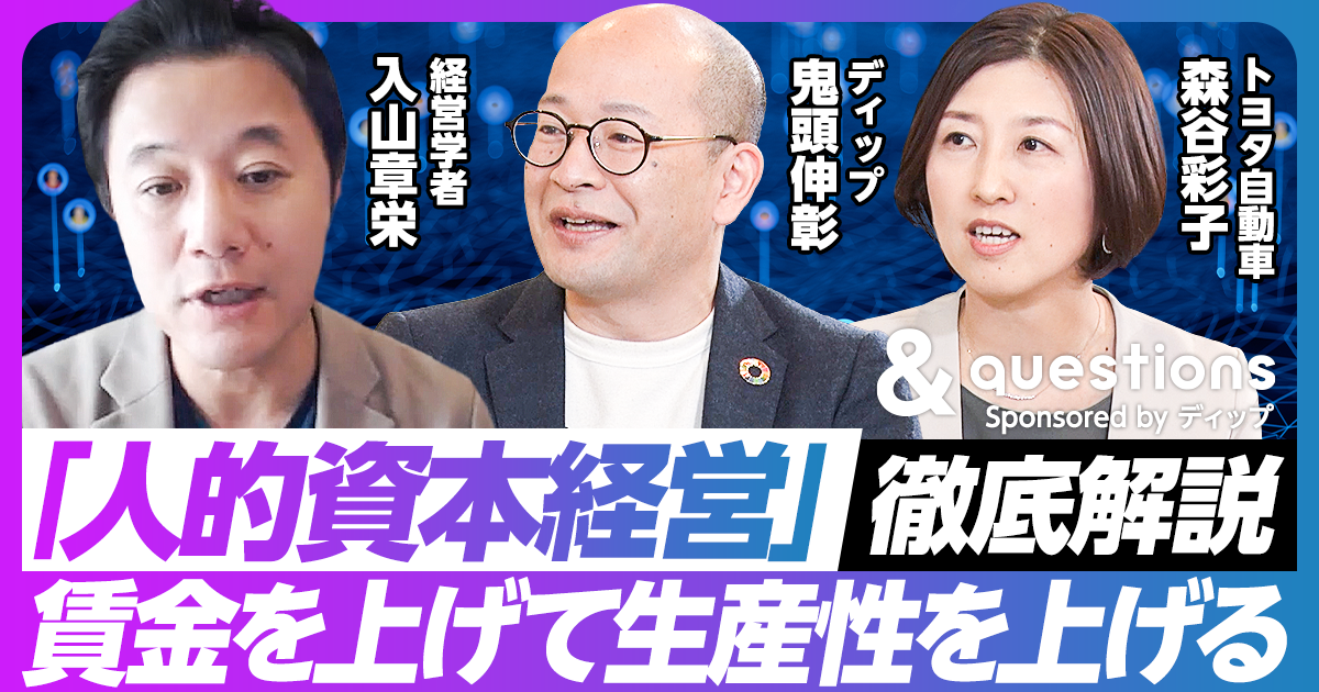 ディップ株式会社(以下、「当社」)の執行役員 鬼頭伸彰が、早稲田大学ビジネススクール教授の入山章栄氏、トヨタ自動車株式会社の森谷彩子氏と共に「人的資本経営」について語る動画コンテンツが公開されました。今日注目が高まっている人的資本経営について改めて理解を深めると共に、日本の企業が成長を続けるためにこれから重視すべきことや、具体的な「人への投資」の取り組み事例を解説しています。