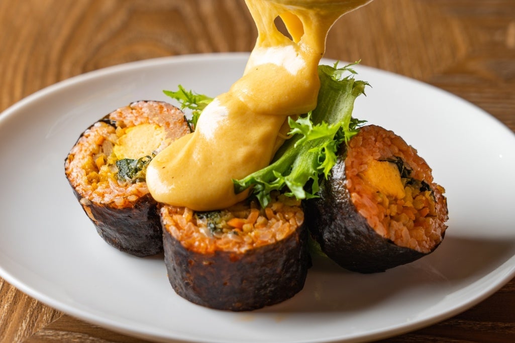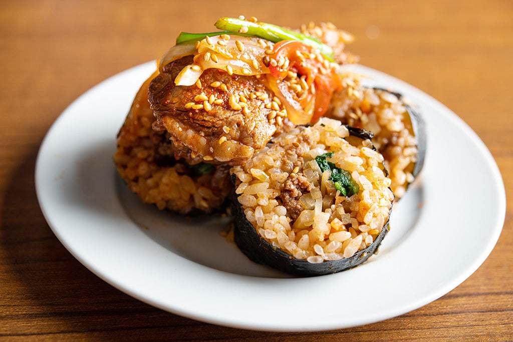 「ラッキーソウル」で、密かに強力なオリジナリティーを発揮しているメニューが「キンパ」。「キン」が海苔を、「パ」がご飯を表すこの韓国の海苔巻は、日本でも今やすっかりお馴染みの存在。ごま油の風味が、おつまみとしても〆としても存在感を発揮するこのカテゴリに「ラッキーソウル」は3種をラインナップしています。寿司ダネでも大人気のねぎとろを使った日本×韓国コラボの決定版「ねぎとろユッケキンパ(638円)」、甘辛く炒めた牛肉と野菜がご飯と絶妙のマッチングを見せる「プルコギキンパ(638円)」、まさかのイタリアン風!?とろ〜り濃厚なチーズがごま油の香りや味と不思議と好相性をなす「とろ~りチーズキンパ(715円)」。思わず全種類制覇したくなる顔ぶれです。