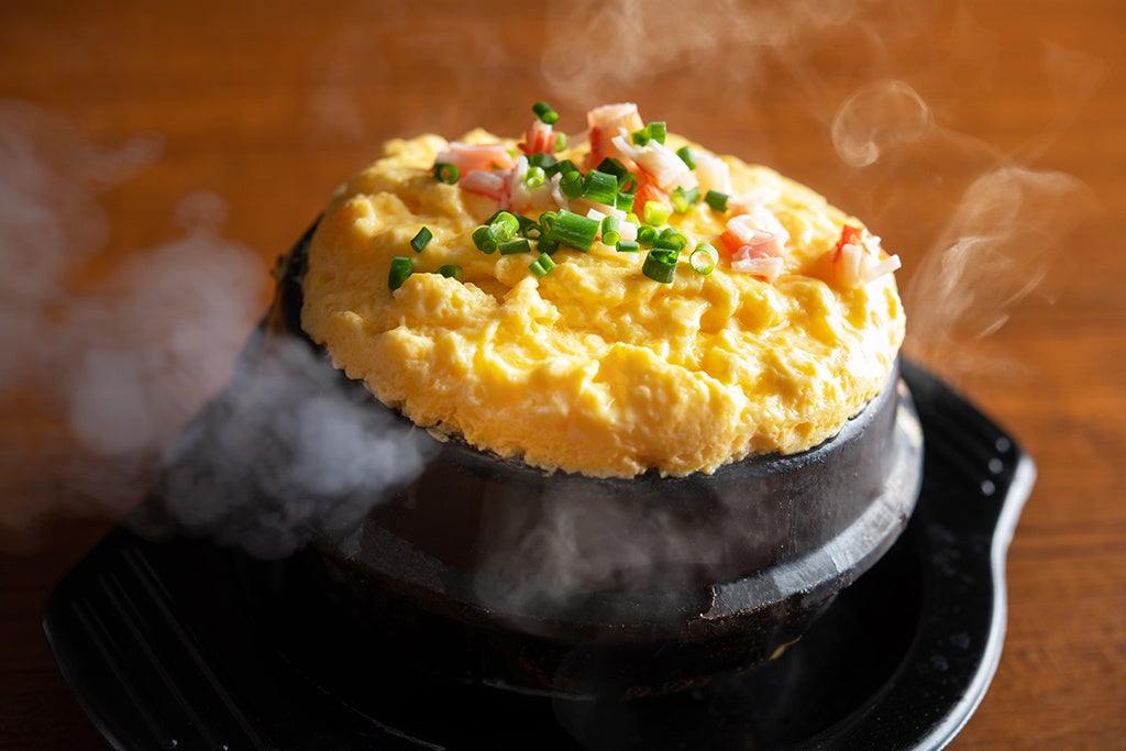 ふわふわ卵の見た目も楽しい韓国風茶わん蒸し。お出汁たっぷりの優しい味わい。