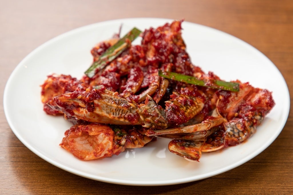 ワタリガニを特製の味噌で漬け込んだ贅沢な逸品。噛むと蟹の旨みがじわり。