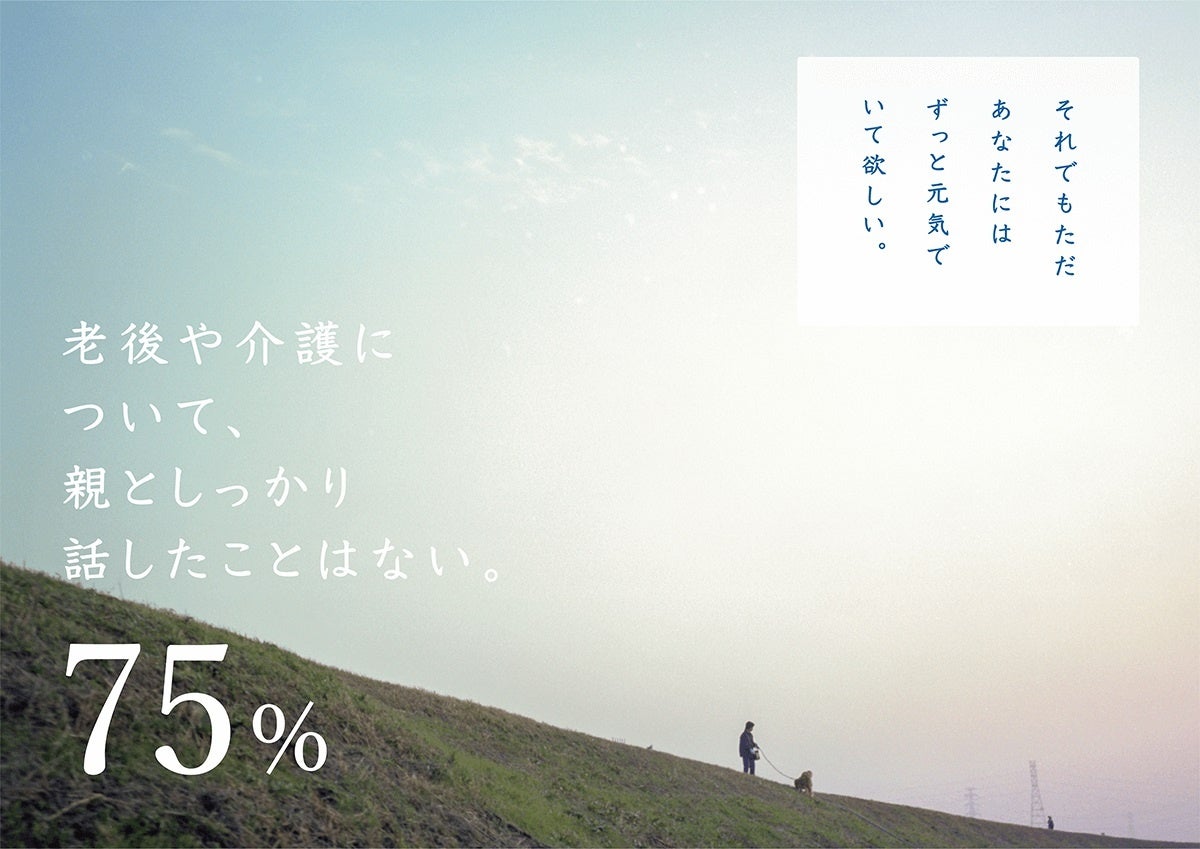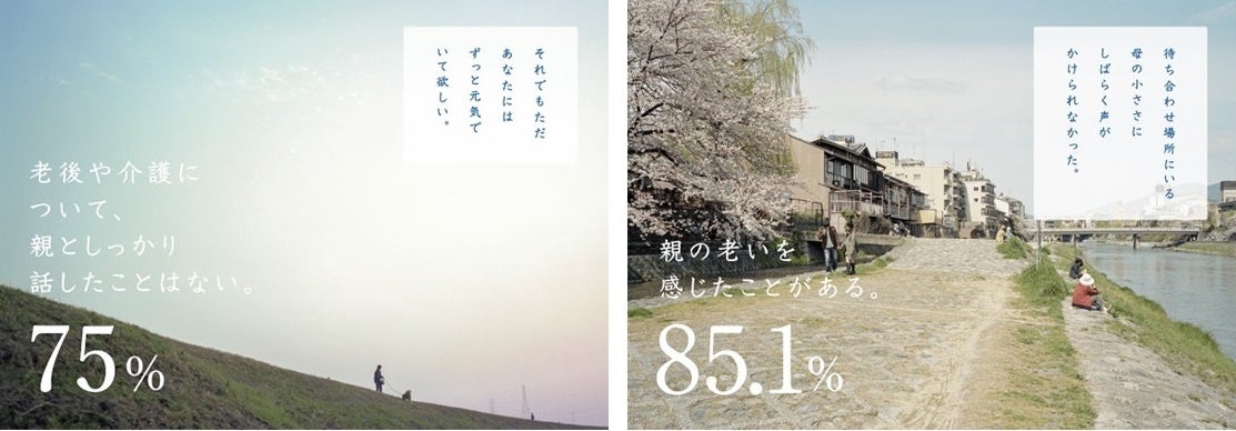 「いま、親のいまを知ろう。」は、介護用品・福祉用具のレンタルと販売を手掛ける、ダスキン ヘルスレントによるプロジェクト。60歳以上の親世代(※1)と、60歳以上の親を持つ子世代(※2)、計2,000人を対象に、「親のいま」に関する親子2世代の意識調査を実施し、その結果をポスター展や動画を通して広く伝えることで、社会に対して「親のいま」に対する意識を啓発し、親子でコミュニケーションする機会を増やすことを目指しています。いつか直面する介護への備えとして、今から準備することの大切さに気付かせてくれる取り組みとなっています。