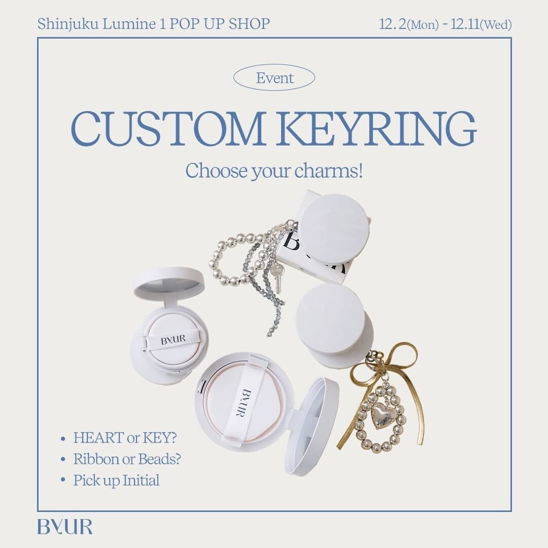 SNSで話題の大人気クッションファンデを彩るキーリング、ポーチなどスペシャルなアイテムが登場いたします。ポップアップ限定で、お好きなキーリング、パーツを組み合わせてクッションファンデ」をカスタマイズができるブースも。