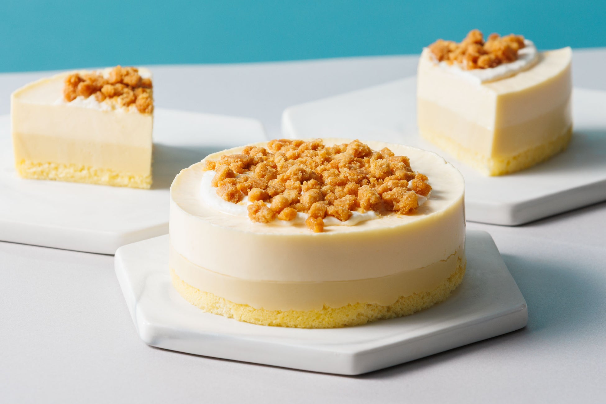 しっとりと焼き上げたスポンジケーキに、濃厚なゴルゴンゾーラクリーム層と、マスカルポーネの優しい甘みが引き立つムースを重ね合わせました。仕上げに生クリームと、シナモンがほんのり香るシュトロイゼルをあしらった、チーズの風味を存分に楽しめるムースフロマージュです。チーズが織りなす奥深い味わいを、ぜひご堪能ください。