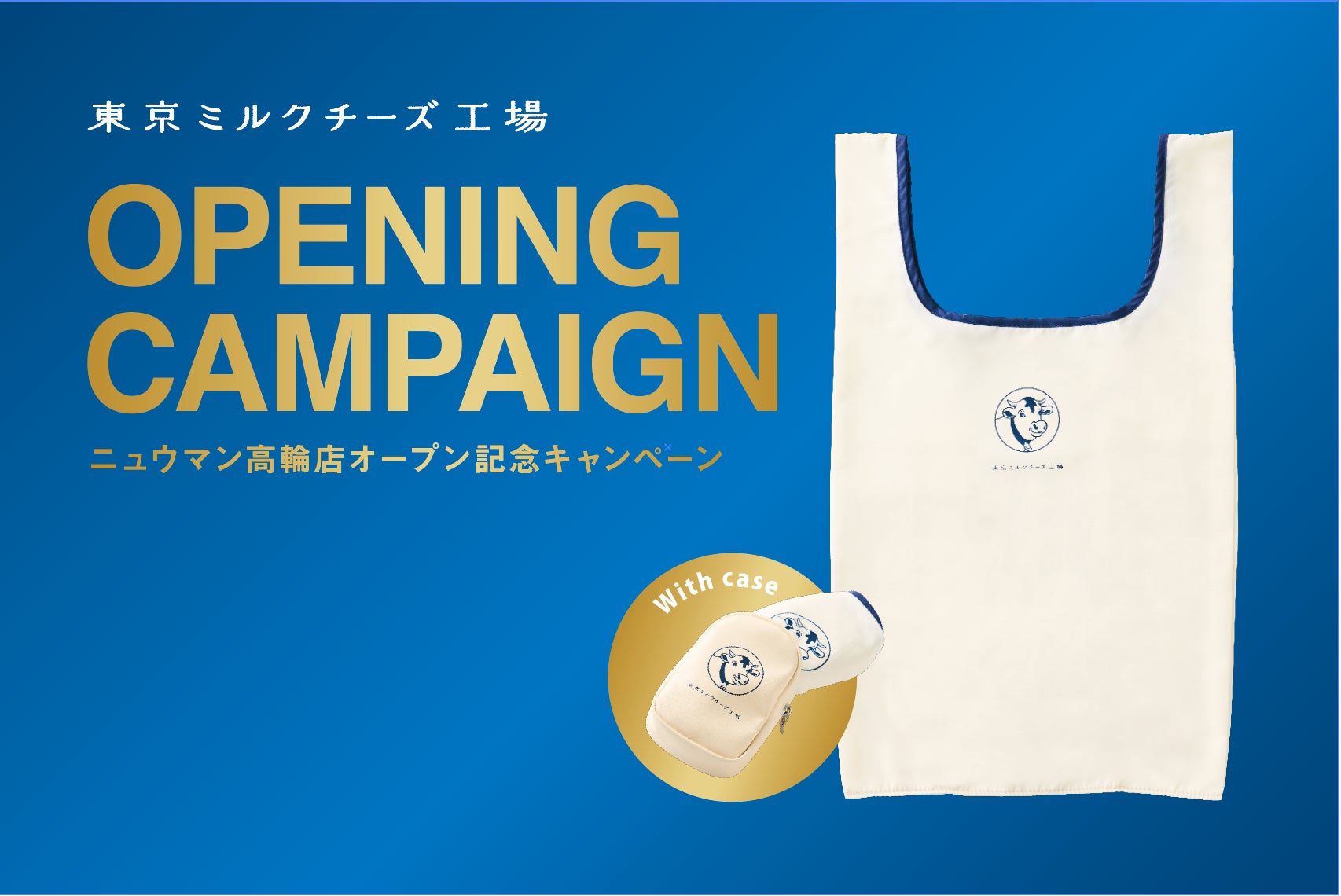 この度のオープンを記念し、税込5,400円以上をご購入のお客様に、東京ミルクチーズ工場オリジナルケース付きエコバックをプレゼントいたします!