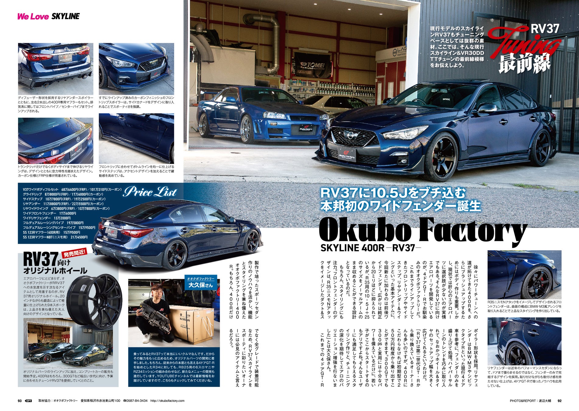 VR30DDTTのチューニング適正の高さで、人気を集めるスカイライン400R[RV37]。オオクボファクトリーのエアロ、フェニックスパワーが解説するGCGターボ・ハイフロータービンの魅力、そしてG25タービン仕様を製作しているシードレーシング…と、3社の最新チューニング情報をお届けする。