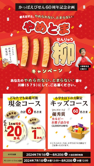 ※キャンペーンウェブサイト:https://www.calbee.co.jp/kappaebisen/yametoma2024/