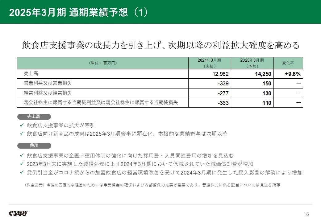 株式会社ぐるなび(本社:東京都千代田区、代表取締役社長:杉原章郎 以下、ぐるなび)は2024年5月14日(火)、2024年3月期決算および2025年3月期業績見通しを発表しました。