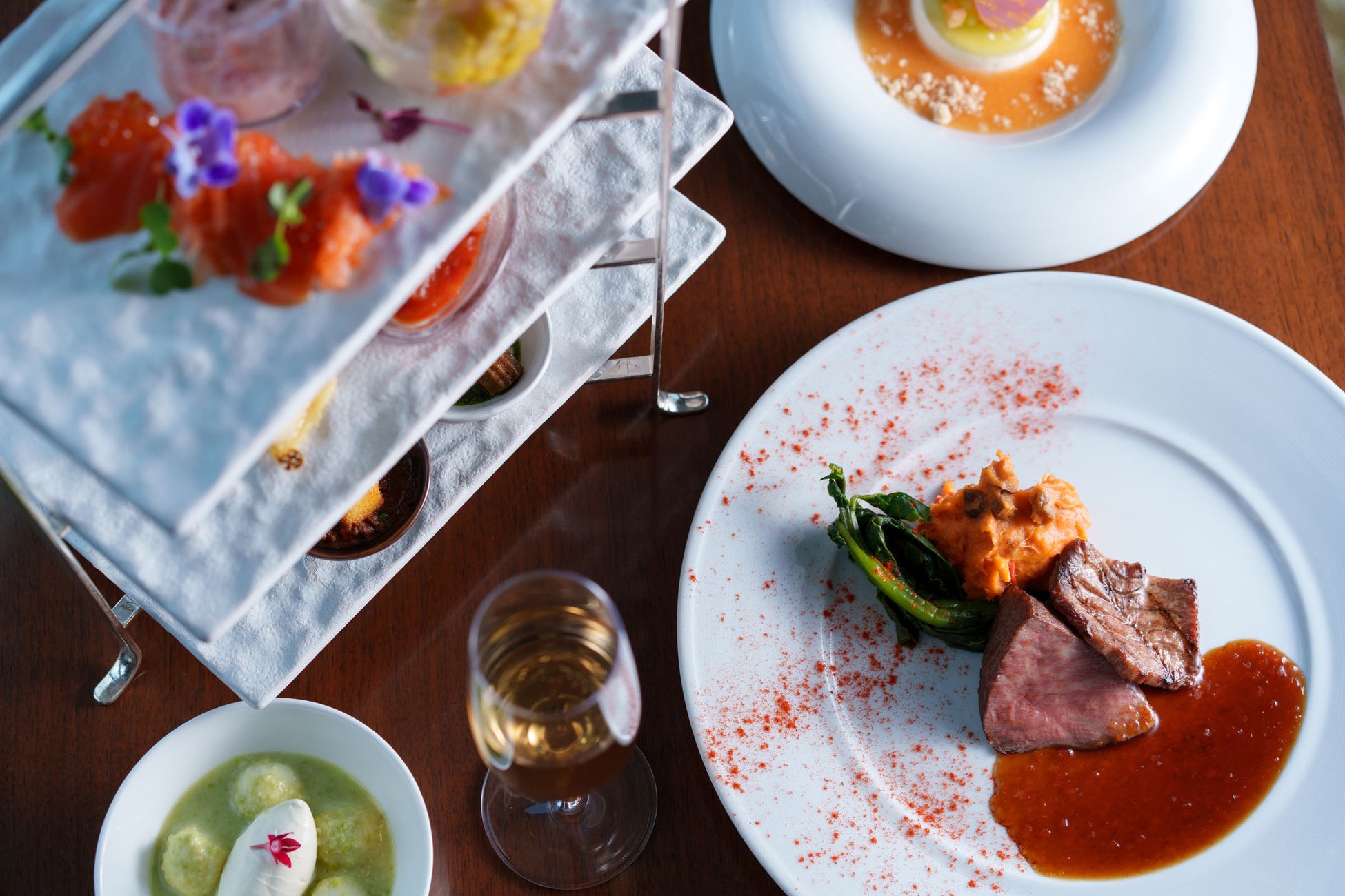 ゴールデンウイーク期間中にご好評をいただいたハイティーをグレードアップ。名産品の笹かまぼこや牛たんに加え、仙台黒毛和牛やみやぎサーモン、県産野菜など、宮城が誇る食材が並びます。メインディッシュは、A5等級の仙台牛ランプ肉に名物の牛たんのグリルを贅沢に盛り合わせた一皿。香り高い宮城県産醤油を加えたシャリアピンソースが肉の味わいを引き立てます。ハイティースタンドには、みやぎサーモンのマリネや、笹かまぼこにワカモレをのせて焼き上げたクロスティーニ仕立て、宮城県産穴子のベニエ、仙台黒毛和牛のミートソースを添えたポレンタのパンフライなど、地元の名産品や食材を夏らしく鮮やかにアレンジしたオードブル6種類をラインナップ。オリジナルモクテルのほか、ソフトドリンクのフリーフローとともにお楽しみください。デザートは、ずんだ餡をトッピングしたバニラアイスクリームと、メロンのスープに浮かべた滑らかなココナッツのブランマンジェの2種類をご提供。締めのひと口まで、仙台・宮城の各地の味わいを存分にお楽しみいただけます。夏休みの仙台へのご旅行や、帰省時のご家族・ご友人とのお集まりにもおすすめです。