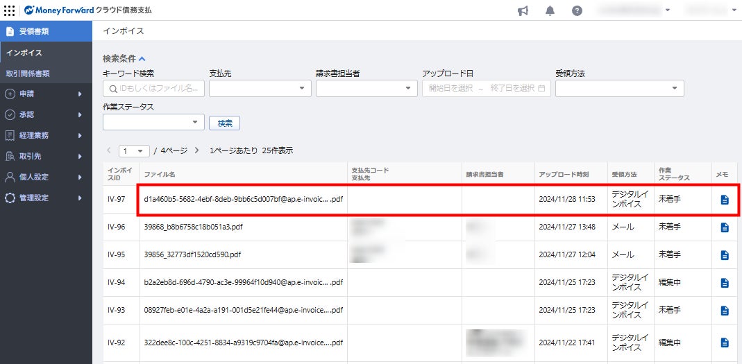 『マネーフォワード クラウド債務支払』、デジタルインボイスの受領に対応