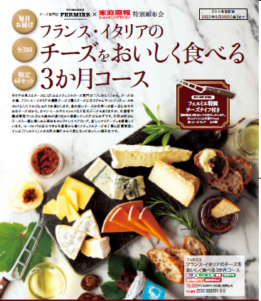 - 【限定60食】フランス・イタリアのチーズをおいしく食べる3か月コース