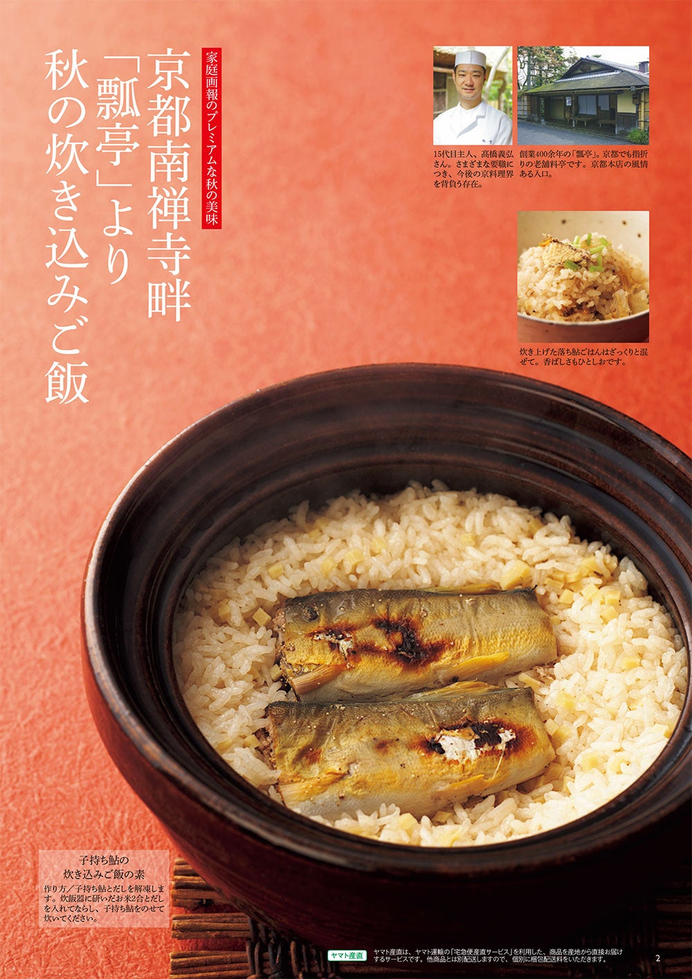株式会社世界文化リテイリングが運営する「家庭画報ショッピングサロン」( https://shop.sekaibunka.com/ )の食品通販『デリシャスごちそう便』に注文が殺到中。京都・最高峰の料亭「瓢亭」の炊き込みご飯の素(限定100セット)が発売開始から1週間で完売。家庭画報ならではの名店の味に人気が集まっており、他では手に入らいない特別なグルメセットは、高価格帯にもかかわらず熱い支持を受けています。