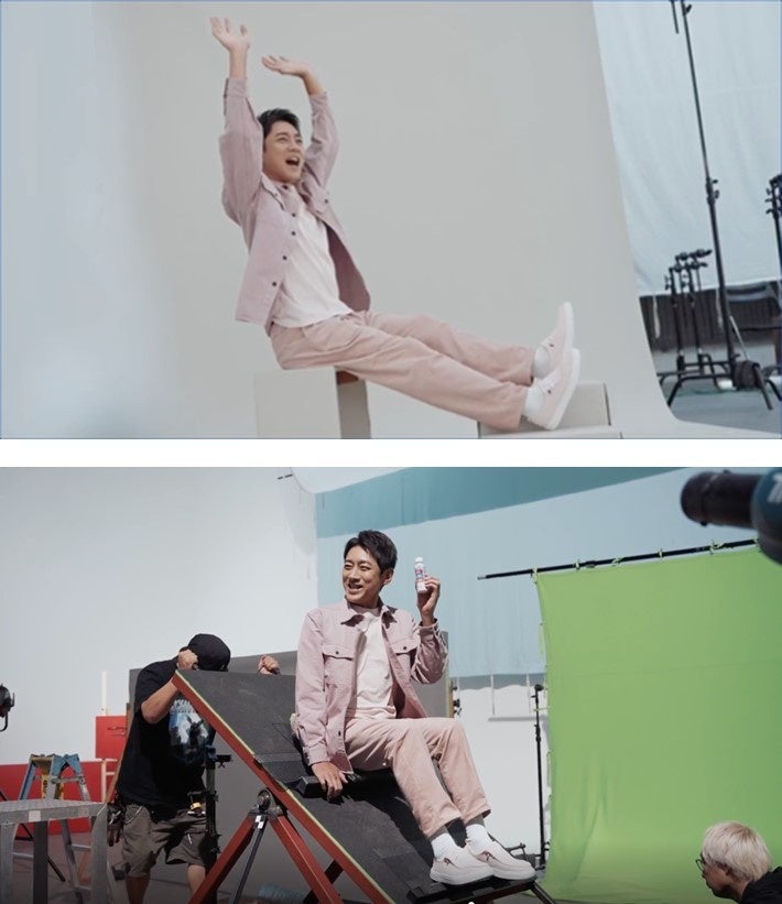 爽やかな笑顔で現場入りした小泉さんは、グラフィック撮影では細かな調整にも笑顔で応じ、「一度自由にやってみてもいいですか?」と自ら提案し、自然体な演技を披露しました。CM本編の撮影では「何かあれば、その都度言ってください!」と監督に声をかけ、滑り台からすべり降りるシーンに体を張って挑戦。セリフのシーンでは「収縮期血圧」という難しい言葉に苦戦しながらも、撮影は無事に終了しました。小泉さんの妥協を許さない真摯な姿とチームワークが印象に残る撮影となりました。