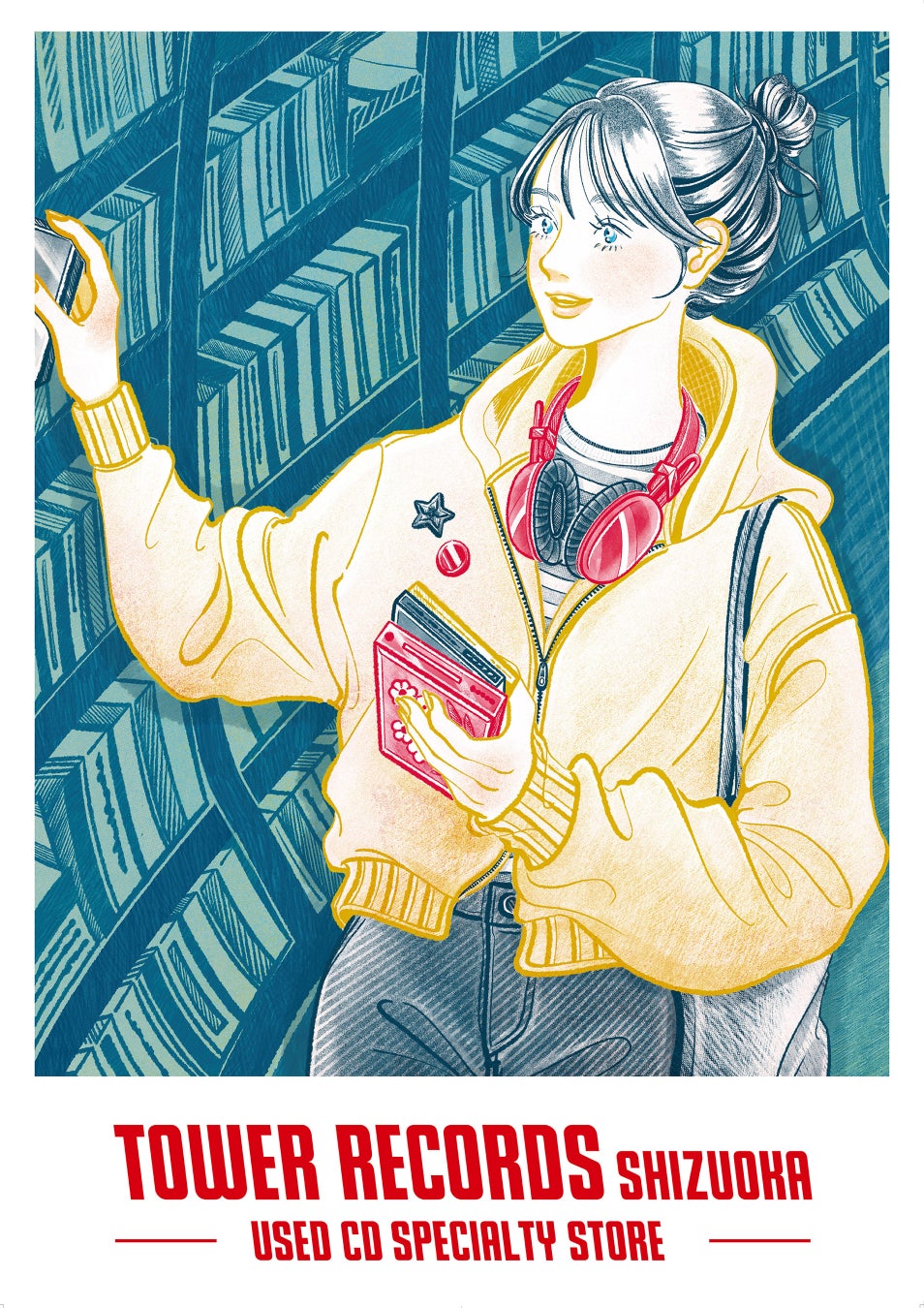 静岡県浜松市出身のイラストレーター・ニシイズミ ユカの描きおろしイラストを使用したポスターを制作し、タワーレコード静岡店にて掲出。“新品や中古という概念にとらわれず、音楽と出会う最良の場でありたい”という思いがイラストになっています。