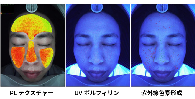 - 紫外線色素形成:既に皮膚表面にある色素形成を表し、将来現れるシワも予測。