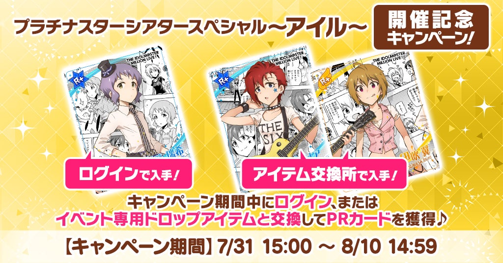 2024/07/31(水)15:00より、コミック連動イベント「プラチナスターシアタースペシャル~アイル~」の開催を記念して、PRカードが獲得できるキャンペーンを実施いたします!