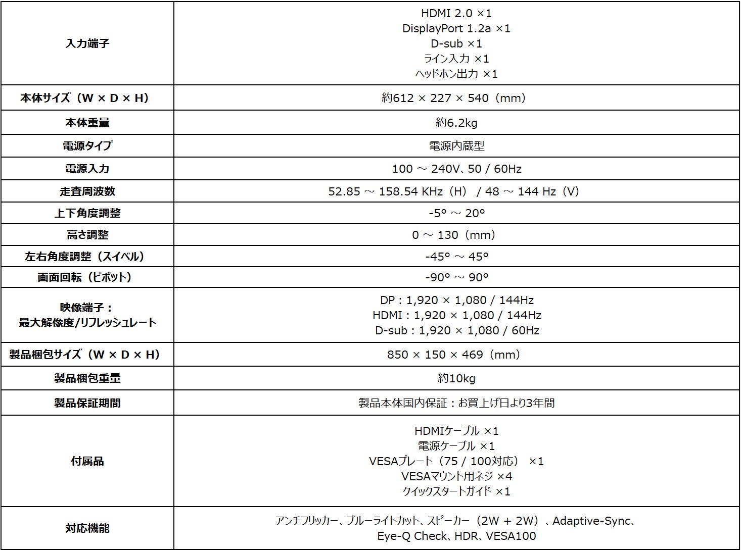 144Hz駆動の高画質IPSパネル