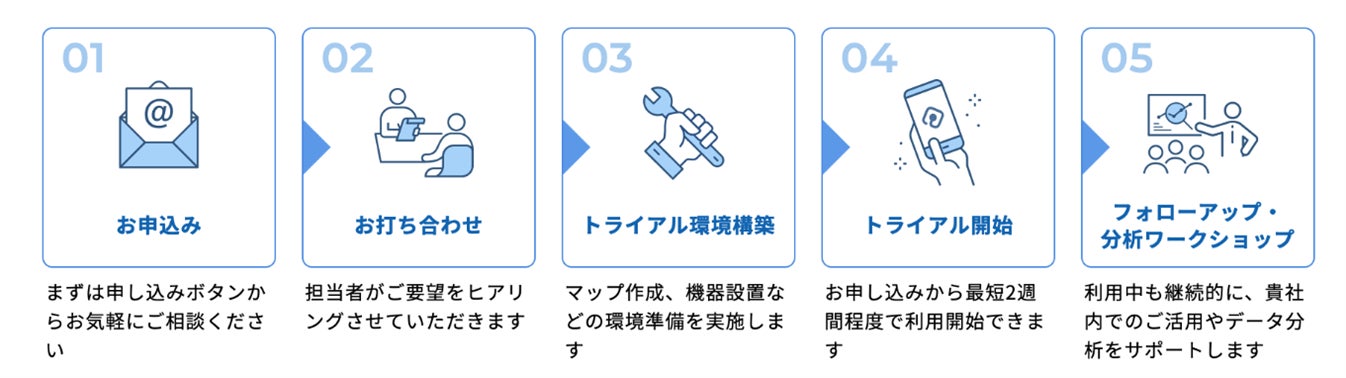 今回、提供開始する「Nimway トライアルプラン」では、これらの機能を約30座席のデスクおよび5部屋の会議室において、最大3か月間、月額10万円から利用することができます。
