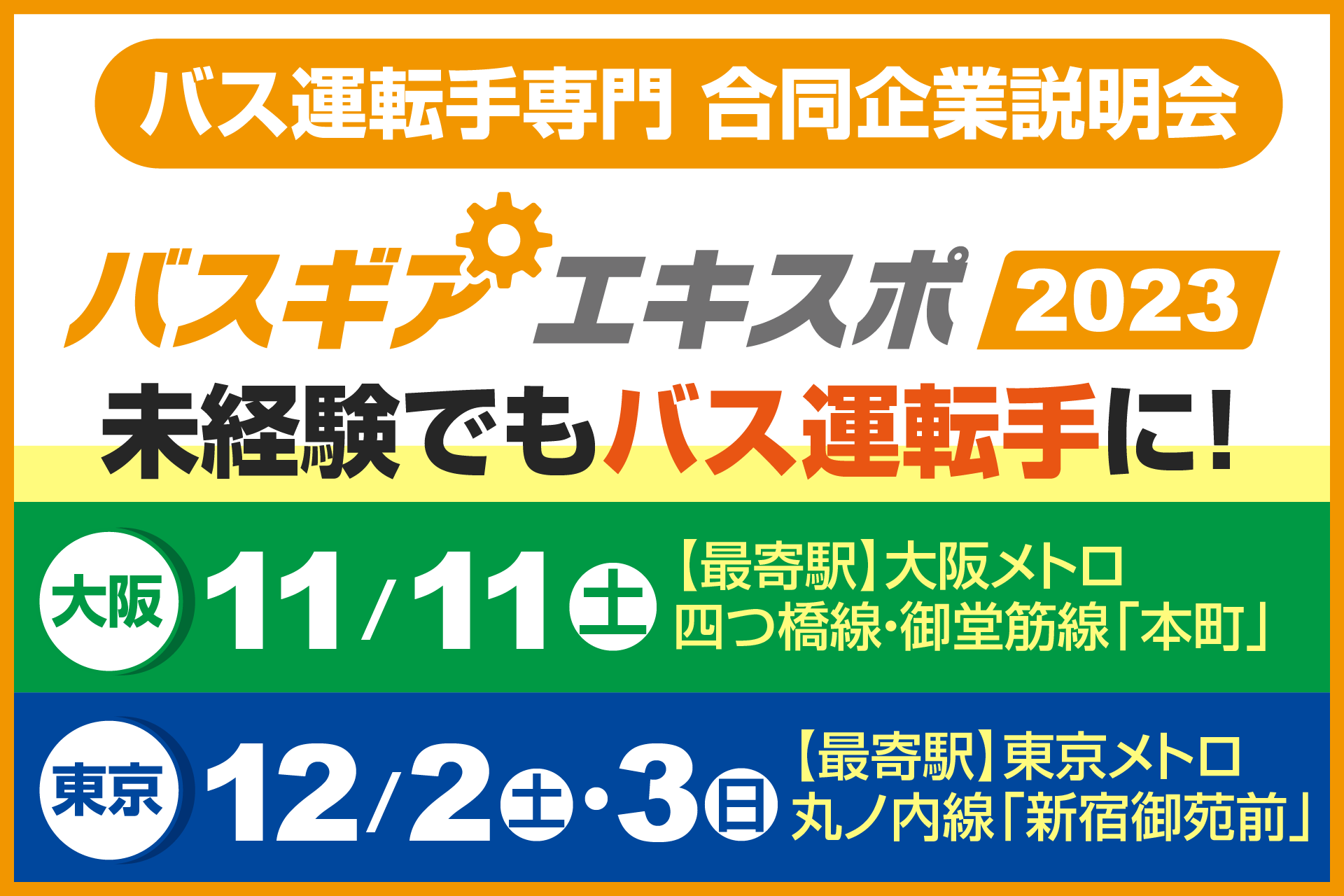 11月11日(大阪)12月2日・3日(東京)【バス運転手専門】合同企業説明会『バスギアエキスポ』開催!~未経験からバス運転手へ~