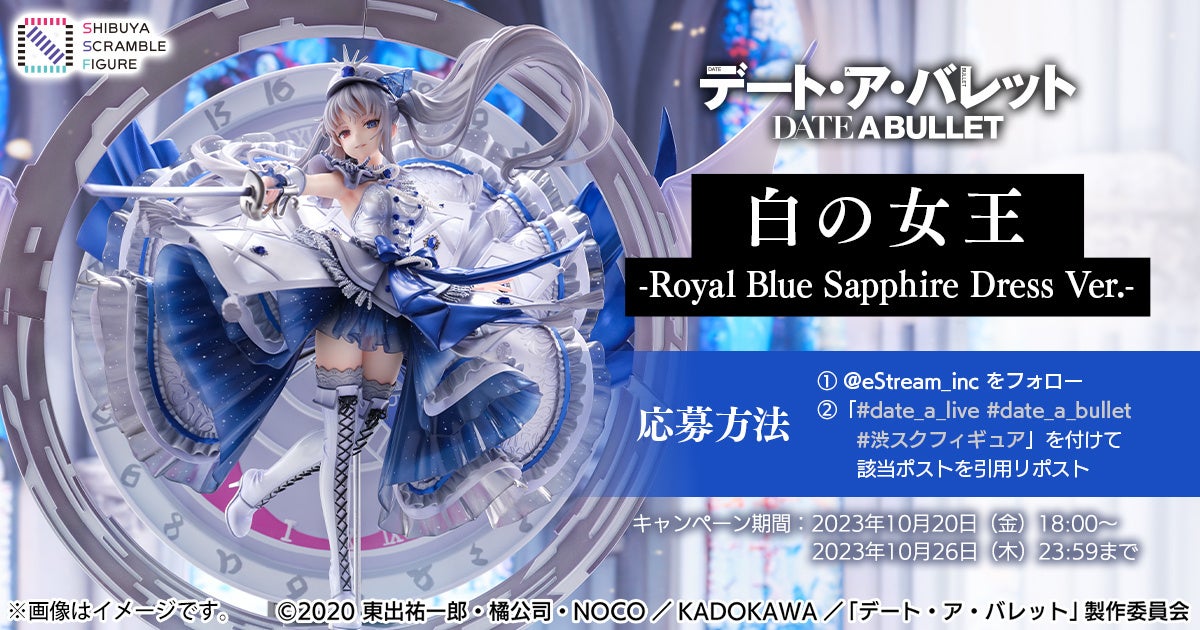 SHIBUYA SCRAMBLE FIGURE、アニメ『デート・ア・バレット』より「白の女王 -Royal Blue Sapphire Dress Ver.-」を本日10月20日より予約受付開始!