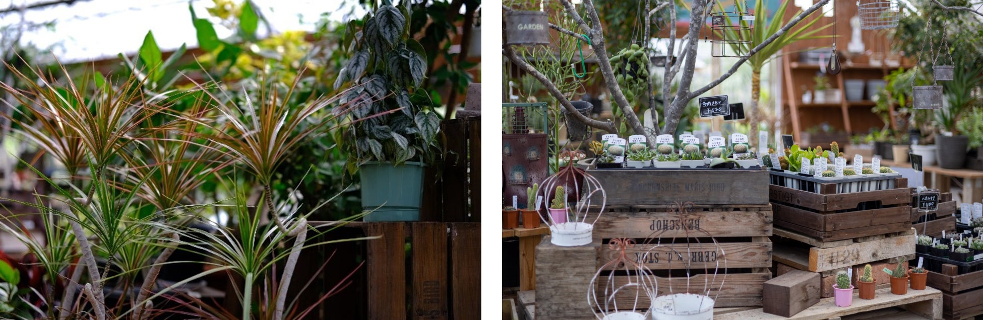 ショップ展開を手掛けるのは、大阪・奈良の県境近くの山間に広大なガーデニングショップを構える「岡本ガーデン」です。庭木・バラ・花苗・観葉植物・多肉植物・ガーデングッズなどの販売を通して緑のある暮らしを提案しています。また、エクステリアや庭のデザイン設計・施工も行っており、近年はプールのある贅沢なリゾートガーデンの創出においても注目を集めています。