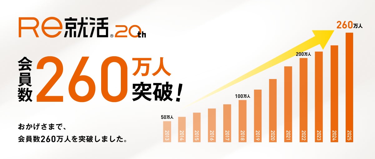 [20代専門]転職サイト「Re就活」の会員数が、260万人を突破しました!