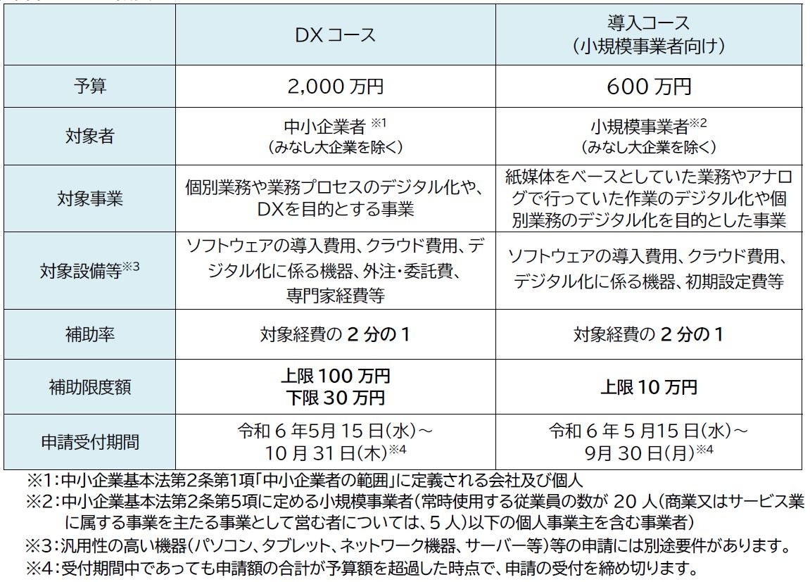 事業規模や投資目的に応じた補助金をご活用いただき、社内のDX・デジタル化をご検討ください。