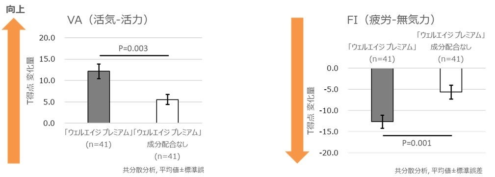 40歳以上60歳未満の(活気・活力の低下や疲れを感じやすい)健康な成人男女82人、「ウェルエイジ プレミアム」 を摂取41人、「ウェルエイジ プレミアム」 成分配合なしのカプセルを摂取41人 |