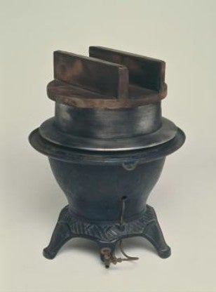 また、洋裁に欠かせないアイロンの変化にも着目します。素早く熱くなり生地を汚さないガスアイロンと、それ以前に使われていた炭を用いたアイロンを展示し、その違いをご覧いただけます。