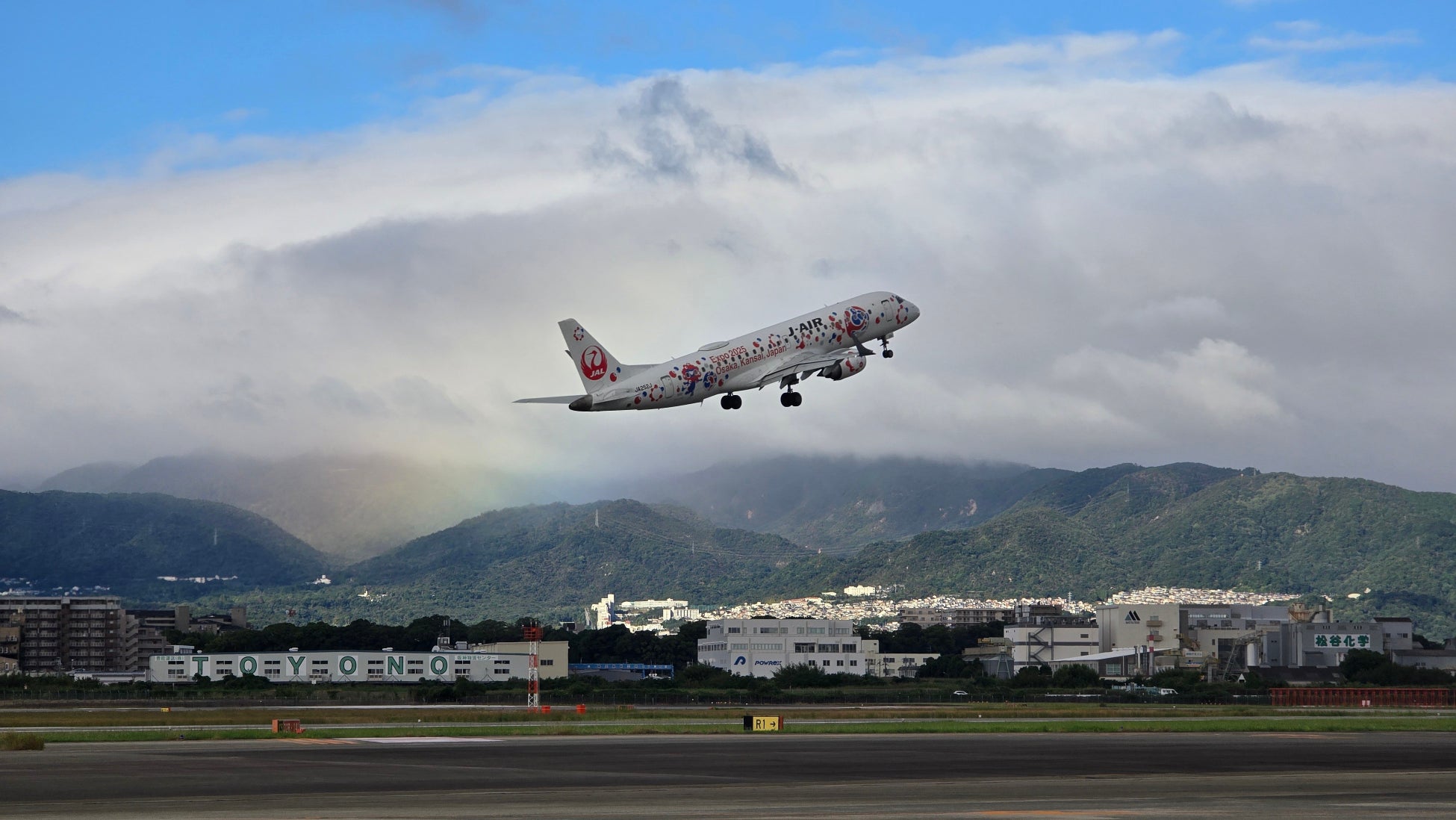 「JAL ミャクミャクJET」は、2025年4月13日から10月13日までの184日間、大阪の夢洲(ゆめしま)で開催された2025年日本国際博覧会(大阪・関西万博)の機運醸成を目的に、公式キャラクター「ミャクミャク」など大阪・関西万博のオリジナルデザインが機体全体に色鮮やかに描かれた特別塗装機です。