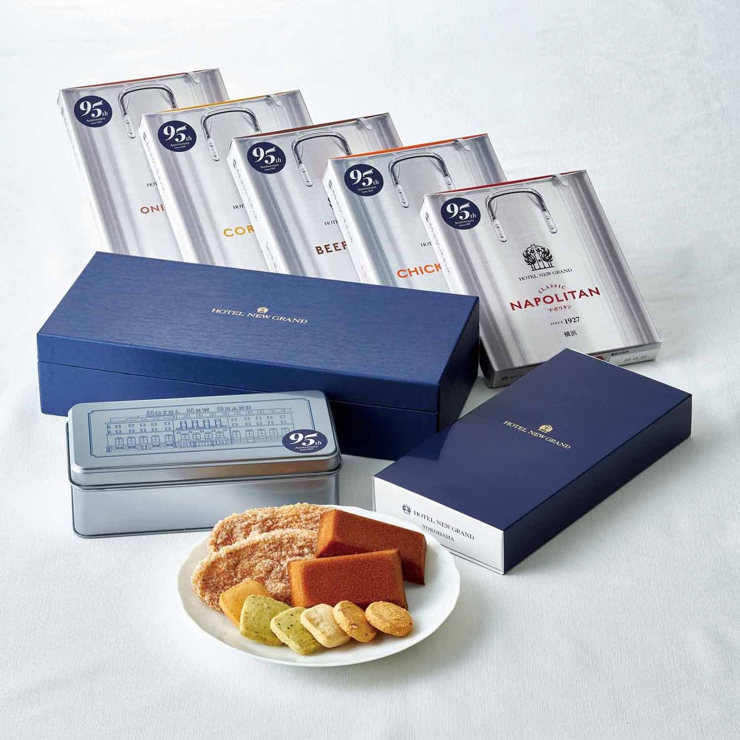 【内容】 レトルト(ナポリタンソースほか5種)、フレーバークッキー(4種、200g、1缶)、