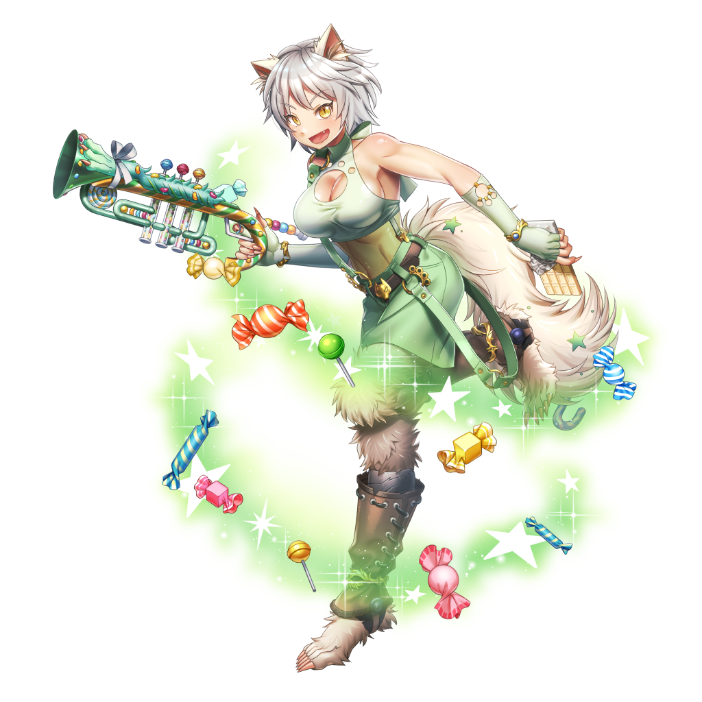 「クゥ【ホワイトメモリー】」が手にしている楽器「クゥ【ホワイトメモリー】のトランペット」がランダムで出現します。STEP UPガチャも同時に開催!