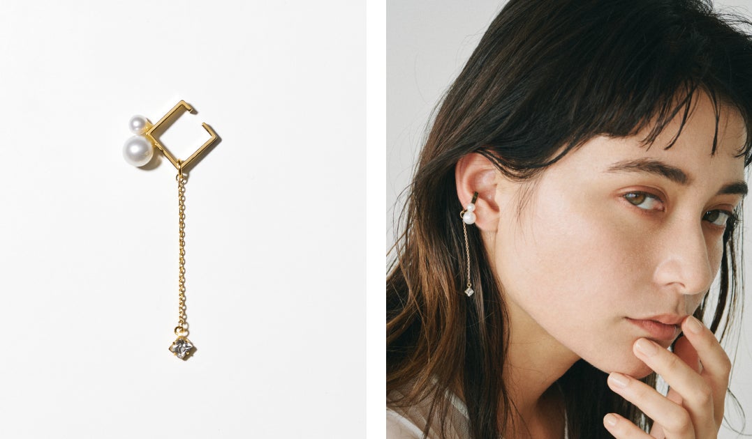 ◆pearl スクエア 2WAY イヤーカフ <gold>