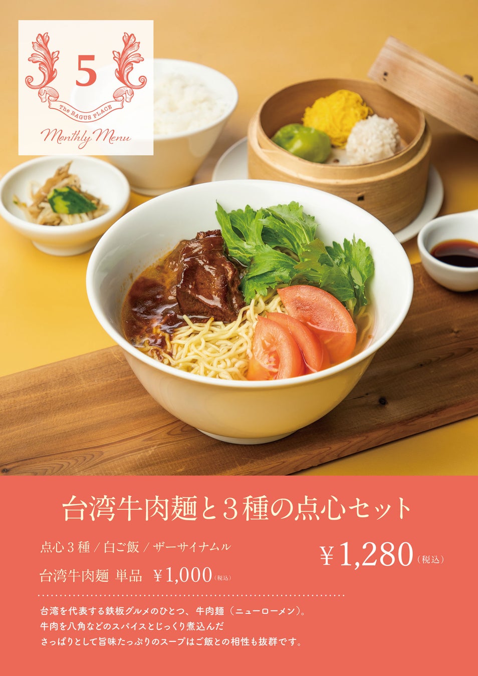 「5月限定ランチ」は台湾を代表する鉄板グルメ『台湾牛肉麺と3種の点心セット』が登場!~銀座バグースプレイス~