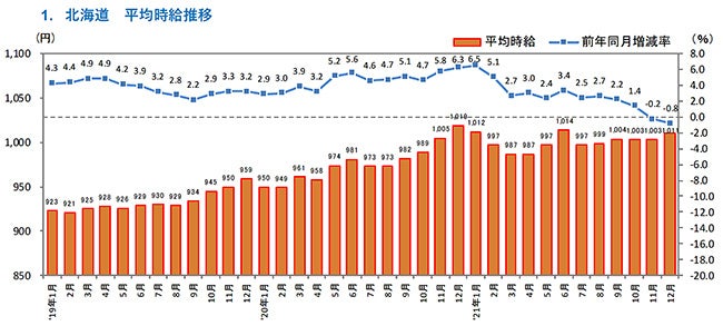 [北海道版]2021年12月度 アルバイト・パート募集時平均時給調査 北海道の12月度平均時給は前年同月より8円減少の1,011円