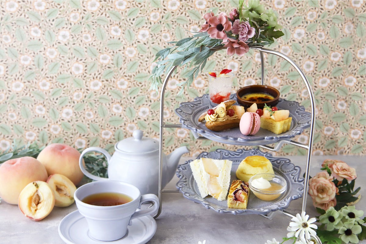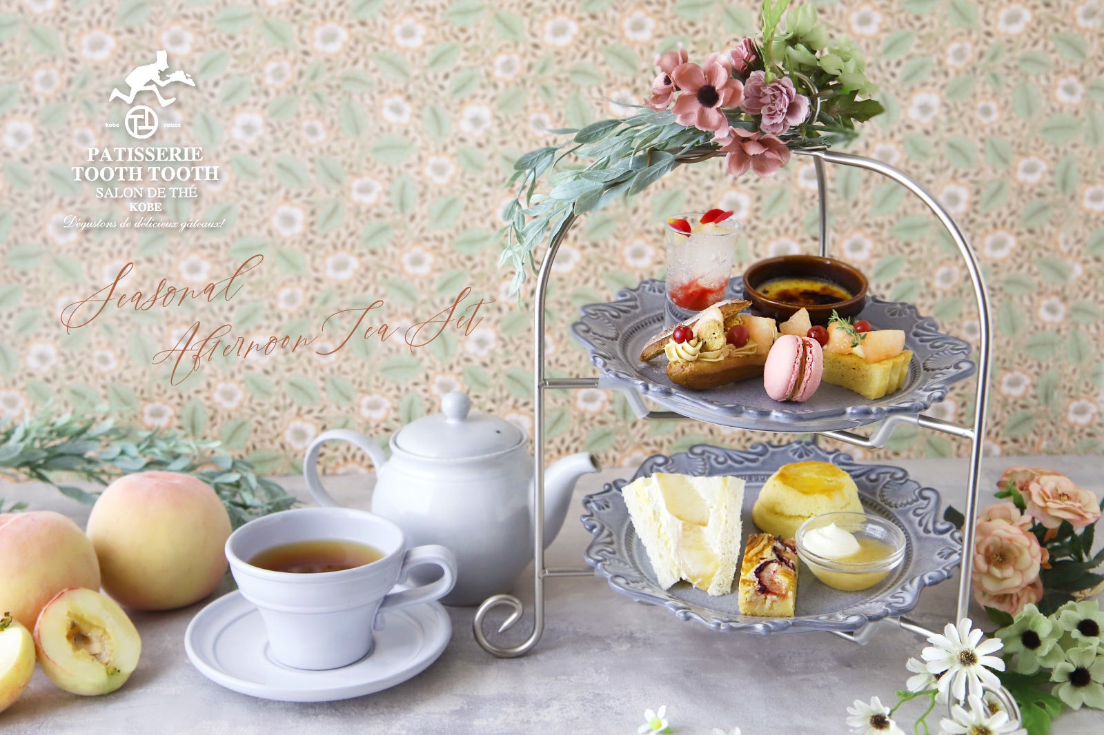 神戸市中央区にある洋菓子屋「PATISSERIE TOOTH TOOTH」(https://toothtooth.com/patisserie-tooth-tooth)のサロンより、桃のアフタヌーンティーが2022年6月2日(木)から登場。