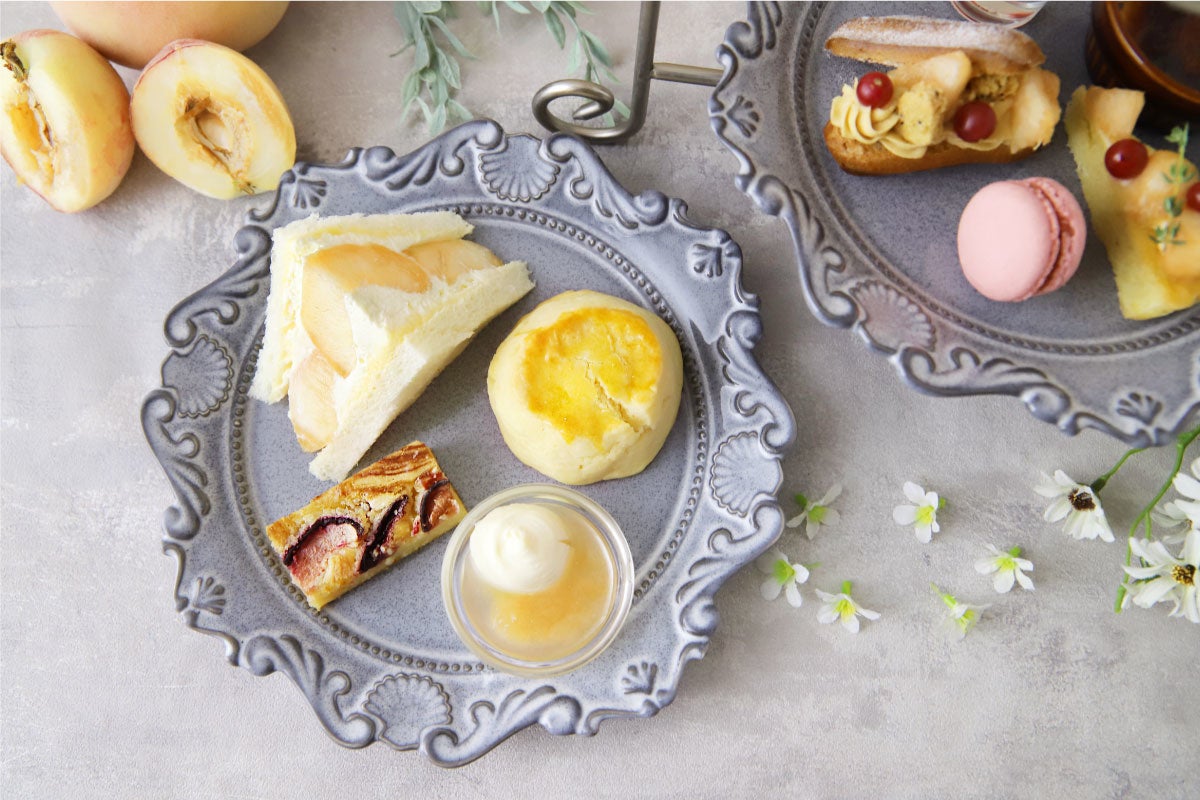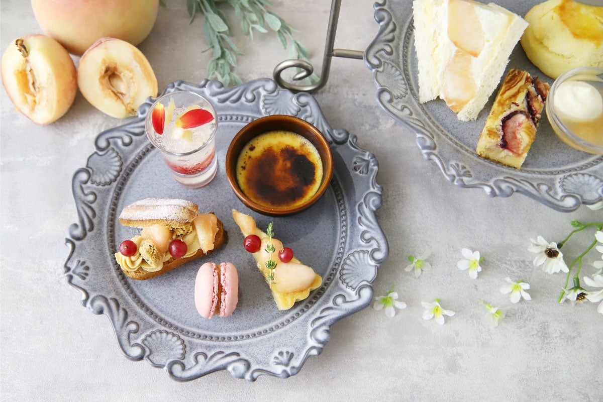 まるくてカワイイ!この季節のとっておき果実「桃」。みずみずしい桃を様々なプティガトーでお愉しみいただけるアフタヌーンティーをご用意しました。