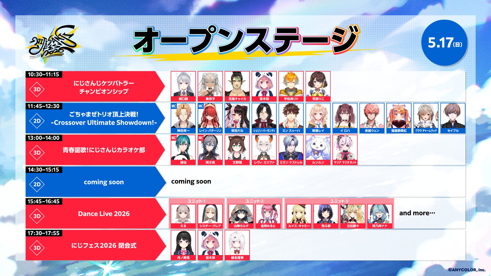 組み合わせや登場時間、グリーティングのチケット情報は続報をお待ちください。