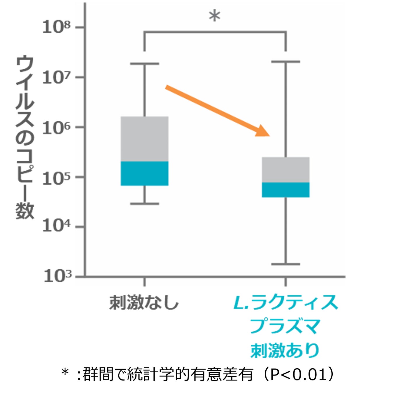 また、L.ラクティス プラズマ摂取群の血液中の免疫細胞の培養上清がウイルスの増殖を抑制※4することが明らかとなりました。