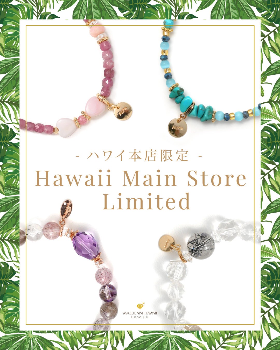 本店限定ラインナップは、マルラニハワイのコンセプトである「天然石の本来のエネルギーを活かした、おしゃれなパワーストーンアクセサリー」を体現するアイテムを、多数取り揃えております。
